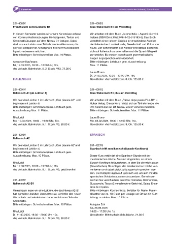 Italienisch A1 (ab Lektion 8) Ciao! Italienisch B1 plus am Vormittag
