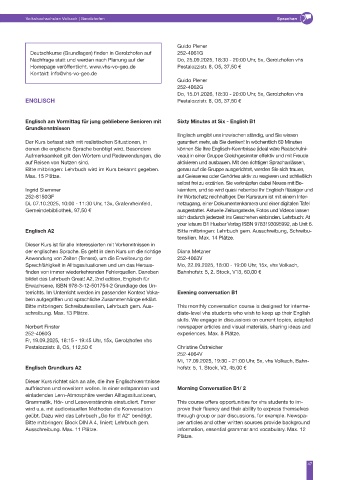 Grammatik, Hör- und Leseverständnis einstudiert. Ferner This course offers opportunities for vhs students to im-