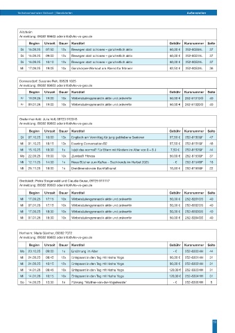 Beginn Uhrzeit Dauer Kurstitel Gebühr Kursnummer Seite